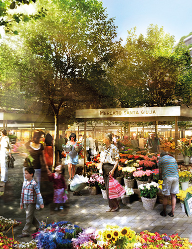 Non solo i residenti di Milano Santa Giulia, e di Milano, ma anche tutti gli altri visitatori avranno a disposizione aree verdi, numerosi servizi e spazi dedicati al tempo libero e al lavoro, mantenendo sempre una connessione con la città e le sue opportunità.
